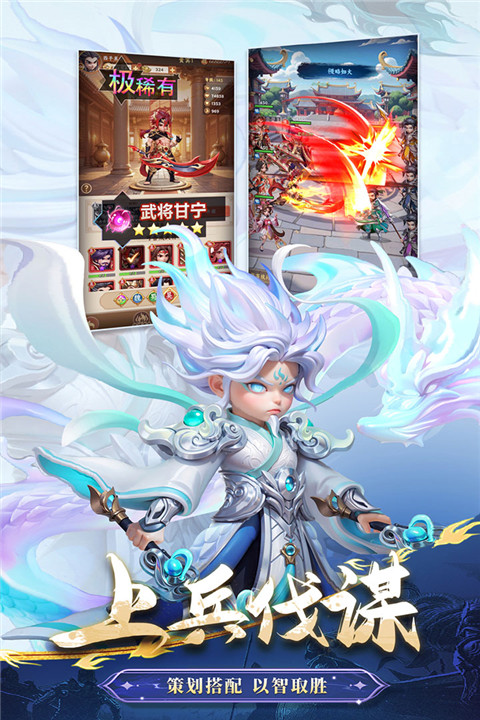 采用Q版古风画面,多个不同风格场景涵盖城池、荒漠、雪山等,武将立绘精致,技能特效华丽震撼。竖版视角设计,单手即可流畅操作,兼顾策略深度与便捷性。