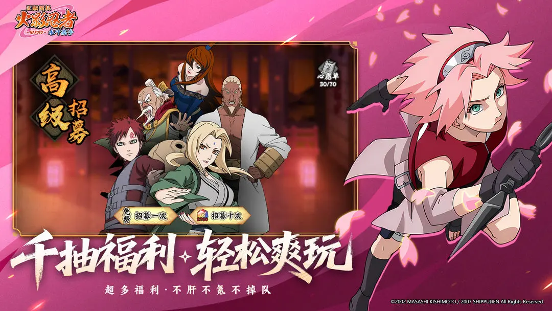 今夏畅享千抽福利,告别肝氪压力,轻松畅玩。登录豪礼、狂欢活动接踵而至,强力忍者与稀有资源唾手可得,轻松集齐忍者全图鉴,豪华阵容随心构建。随时入坑无压力,尽享纯粹的热血魅力。