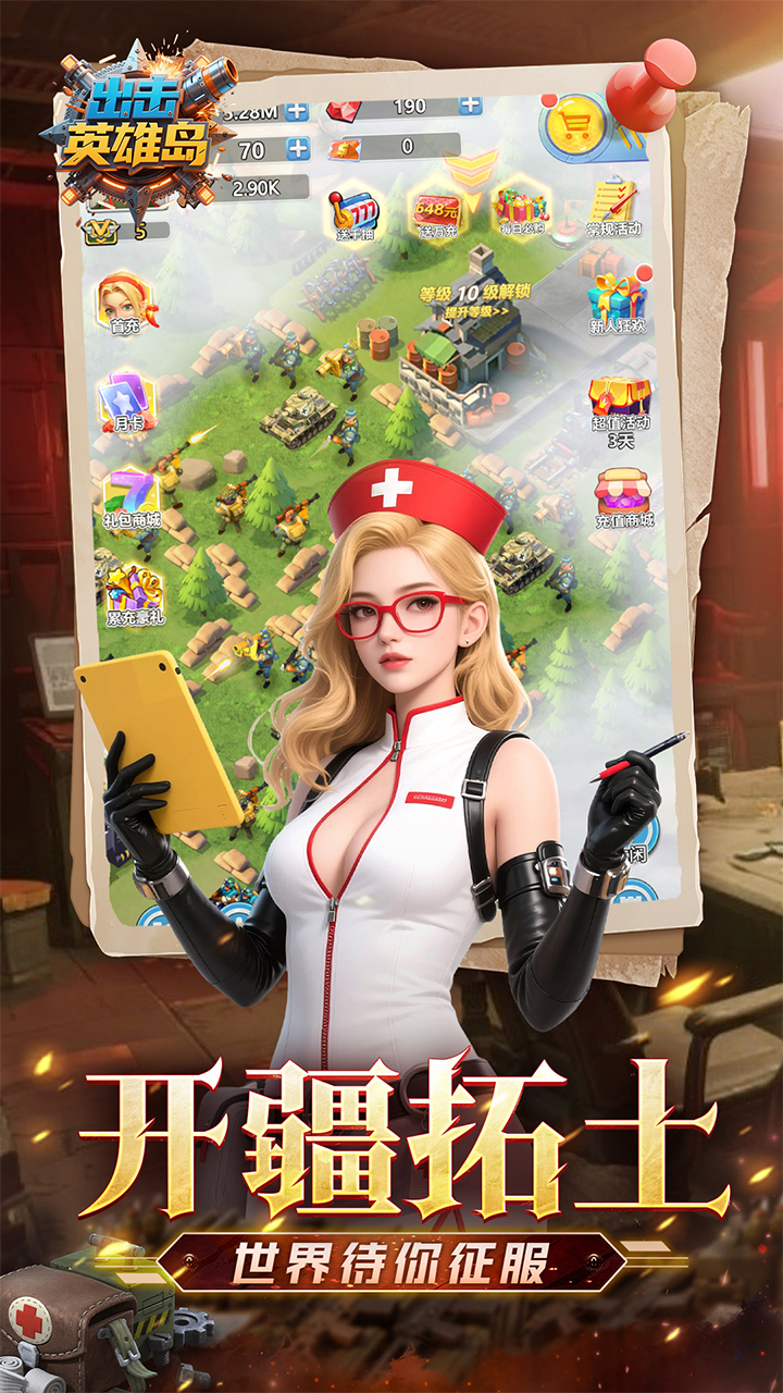 送英雄专属技能、巨量万能碎片、随机红色英雄、高阶强化组件、海量充值卡、豪华装饰品、稀有兵种装备; 更有1元秒杀、下载有礼等惊喜等着你!