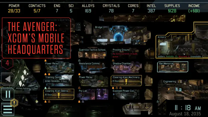 5、研发和升级:在复仇者联盟上配置各种舱室,为XCOM在各种战场上提供新的能力。让科学家和工程师研究、开发和升级合适的武器和盔甲,以匹配您喜欢的战术。