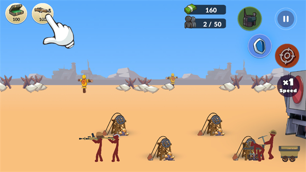 火柴人第二次世界大战官方正版是一款以二战为背景打造的火柴人塔防策略射击手游。游戏继承了《火柴人战争遗产》的核心玩法,同时加入了全新的元素,打打提升了游戏的趣味性和策略性。游戏采用横版战斗模式,地图丰富,操作简单容易上手,画风简约清晰。你将在游戏中体验真实的战争氛围,你可以使用步枪、机枪、火焰喷射器等各类武器,指挥自己的军队参与战斗。武器越强越能帮助你在对战中取得优势。