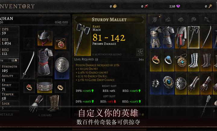 13、收集并装备超过200件独特传奇装备。