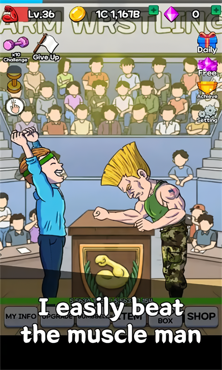 通过训练力量和耐力可以让你变的更加强大,成为最厉害的掰手腕的王者。