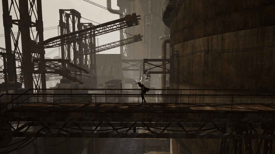 机器人视角后开始操作9S,会收到21O的通讯,让你瘫痪工厂的防御设施。这时不要去驾驶飞行器而是走去别的方向。比如,直接从起重臂上跳下去。
