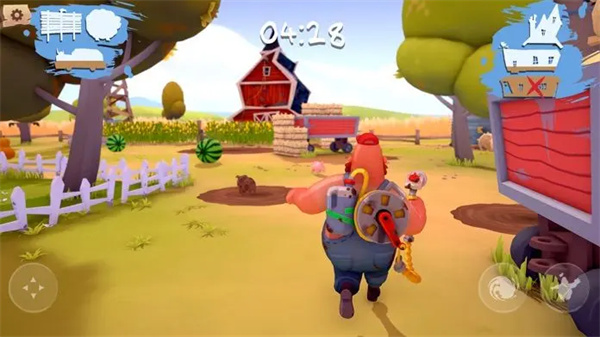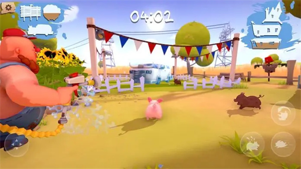 可爱风格的竞技游戏,采用多人联机玩法,你可以选择扮演小猪或农夫。
