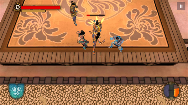 凤凰拳等躲闪、借力打力的招式啧可为主角增加蓝色槽。槽蓄满则可点击右下角图标,并点击敌人发动大招,此时将强制进入单挑模式,除非大招直接将对手打死。
