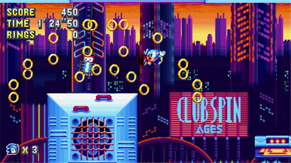 1、经典怀旧复古风格:索尼克狂欢plus以经典的像素横版地图为背景,将玩家带入怀旧的游戏世界,唤起对过去街机游戏的回忆。