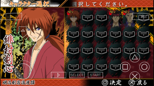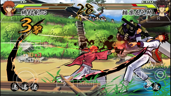 本次《浪客剑心》将以格斗游戏的形式与玩家见面:格斗,是最贴近原作的表现形式,最能还原原作味道。一场一场经典的对决,将在掌中重演。本作依托于格斗游戏形式之上的画面表现也十分具有特色,在攻击之际,画面上会出现描绘力道的墨线。这墨线会根据武器或者角色的不同而有多种演绎,可以说这是能让本作有更爽快演出的系统之一。