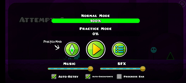 进入游戏前,你必须先要确定自己是否准备完毕了,因为一进入游戏中,你就得做好让方块跳跃障碍物的准备,有人会说缓不过神来的话可以先暂停一下子,但当你按了暂停键后你就会发现你完全看不见方块和障碍、的位置。因此小编认为,在不必要的情况下,尽量不要暂停键,不然继续游戏的那一瞬间,可能就是你重新游戏的时候了。