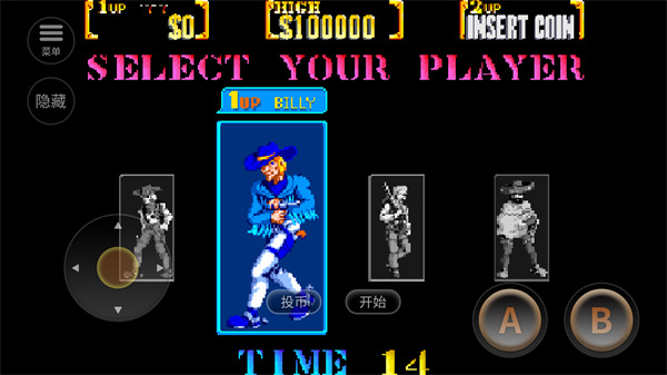 落日骑士手机版以19世纪的美国西部为背景,玩家将作为一位赏金猎人进行通缉犯的追捕以换取赏金,总共有4位牛仔供玩家选择,角色受攻击后会有非常夸张的动画效果,非常的诙谐幽默。操作方式也非常经典,摇杆控制人物移动,A是拔枪射击B是跳跃,非常容易上手。