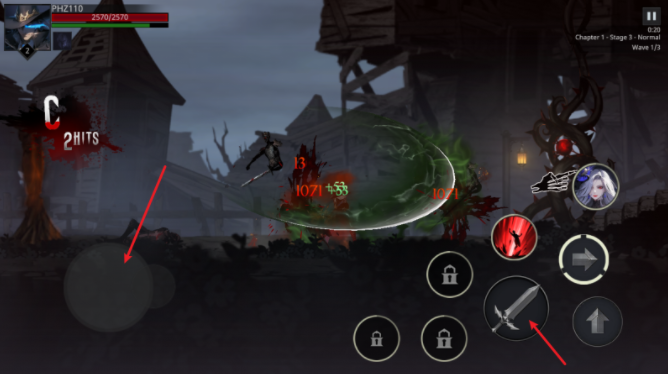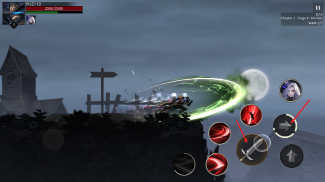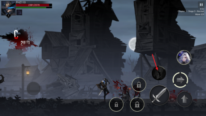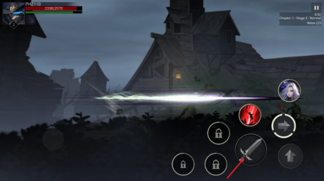 5、点击右侧的前箭头按钮可以进行瞬移,同时按下普通还能追加攻击。