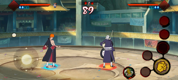 1、操控熟悉的火影角色来展开精彩的格斗竞技,通过简单虚拟按键来让角色展现各种酷炫技能;