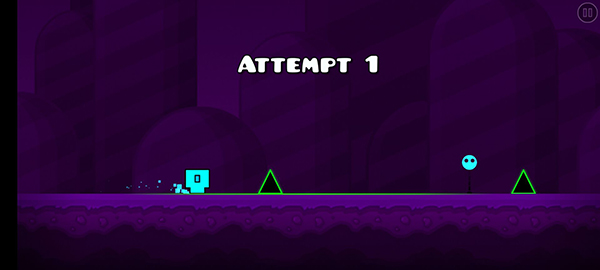 进入游戏前,你必须先要确定自己是否准备完毕了,因为一进入游戏中,你就得做好让方块跳跃障碍物的准备,有人会说缓不过神来的话可以先暂停一下子,但当你按了暂停键后你就会发现你完全看不见方块和障碍、的位置。因此小编认为,在不必要的情况下,尽量不要暂停键,不然继续游戏的那一瞬间,可能就是你重新游戏的时候了。
