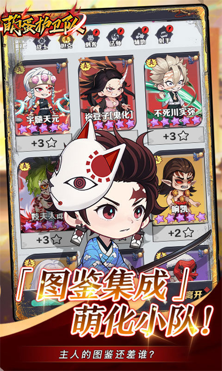 萌蛋护卫队0.1折手游是一款根据热门动漫鬼灭之刃为灵感全新制作而成的手机策略放置类游戏,这款游戏不仅能够为玩家营造出一个原汁原味的动漫世界而且更是完美的刻画了一众耳熟能详的角色,玩家在这里可以根据自己的想法进行角色阵容组合操作,不仅能够触发各种隐藏属性效果而且更是能够衍生出多种游戏套路,可以更好的完成一系列鬼杀任务。
