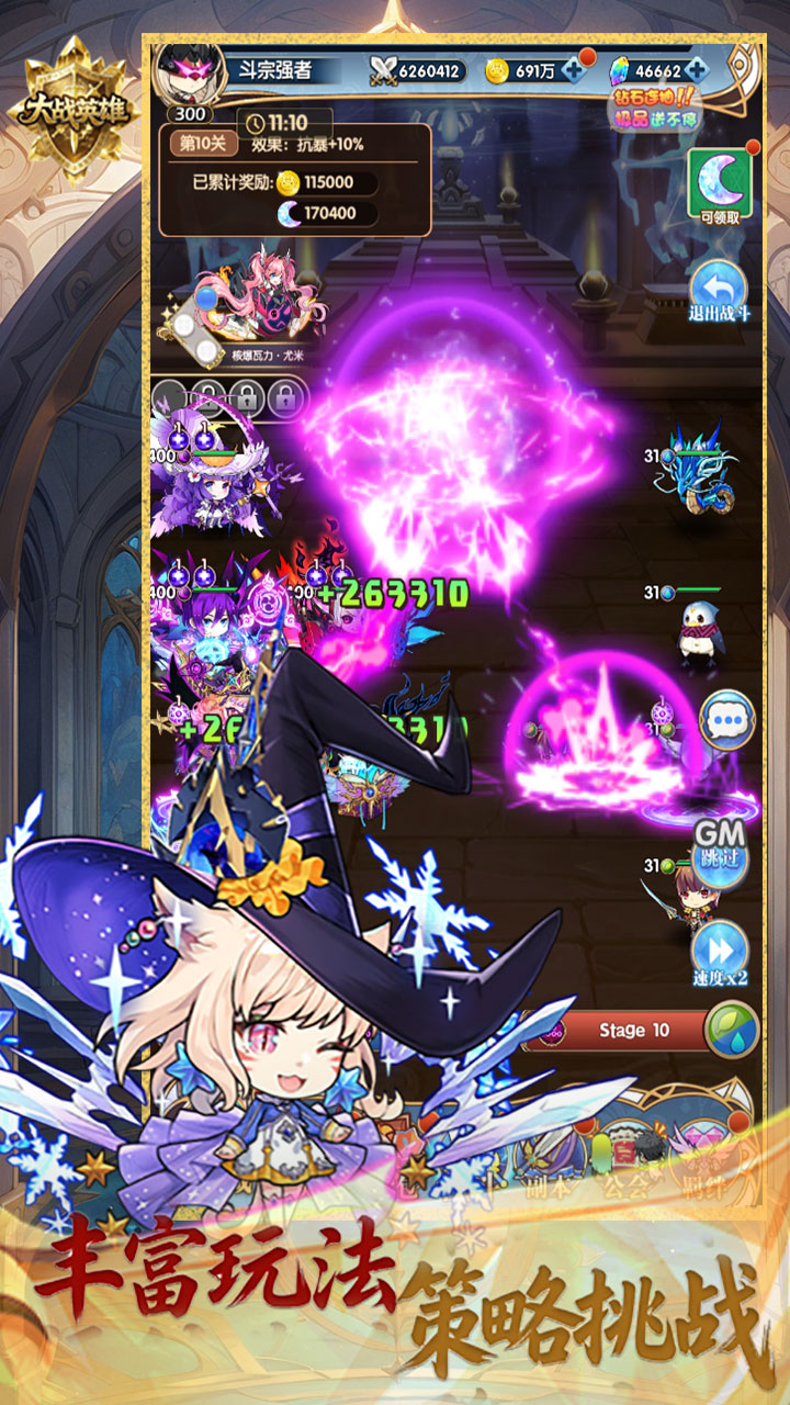 大战英雄登录送百抽版能够为玩家提供海量可选角色并且更是实现了6人阵型以及加入了火水木光暗元素克制体系,这样一来就能够使得游戏对局千变万化,给玩家带来非常灵活的对阵体验。同时,该游戏还拥有幻境之塔、公会团战等一系列玩法内容,无疑很好的提升了游戏的可玩性。此外,该游戏还为新手玩家准备了豪华大礼包,上线即可享受到百连抽的乐趣。