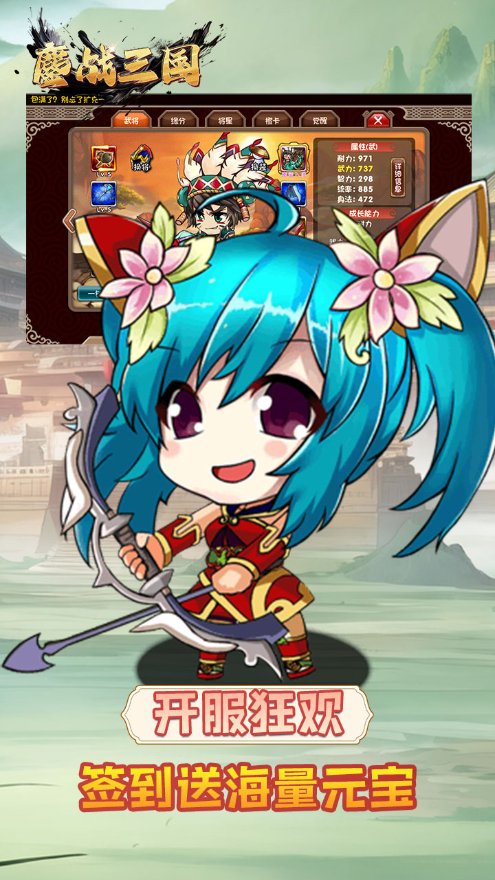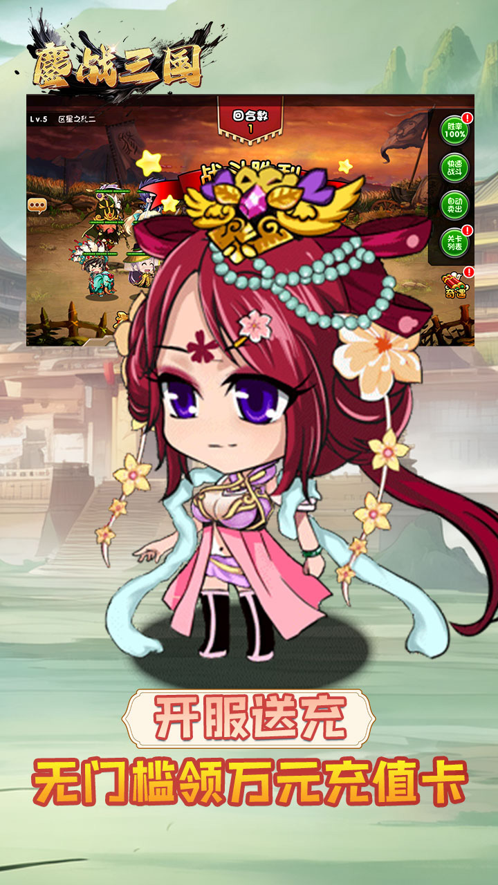 鏖战三国0.05折版是一款Q版画风挂机玩法的RPG卡牌手游,无需玩家操作,也能24 小时无间断挂机升级,自动获取丰厚的养成资源。然后通过养成系统中装备强化、镶嵌、洗练系统以及熔炼和重生系统,将玩家喜欢的武将打造成顶级战力,为你搭建了一个充满乐趣与挑战的三国世界。