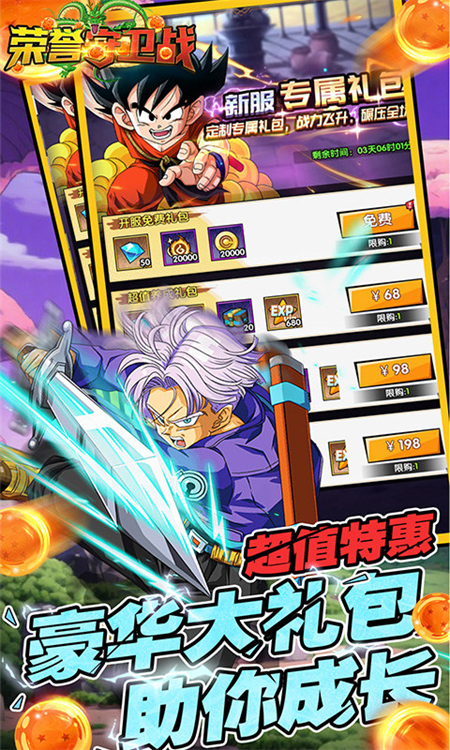 荣誉守卫战龙珠0.1折扣版能够为玩家提供孙悟空、贝吉塔、比克、孙悟饭、特兰克斯等一系列角色并且更是完美的再现了超级赛亚人1至3阶、超级赛亚人之神红蓝、自在极意功等一系列形态,无疑为游戏增色不少。此外,该游戏还加入了主线闯关、修行历练、武道会、卡林塔、天神殿、军团战等玩法,简直不要太爽了。