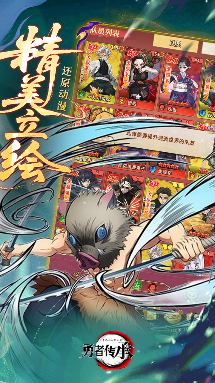 勇者传承0.1折版是一款由人气动漫改编而来的RPG卡牌手游,玩家熟悉的角色都将在游戏中登场,比如炭十郎、祢豆子、蜜璃等等,玩家也不用担心抽不到自己想要的卡,因为游戏中的所有充值档位全部0.1折,0氪玩家也能依靠每日登录送648现金点券攒出资源抽到自己想要的角色,福利非常不错。