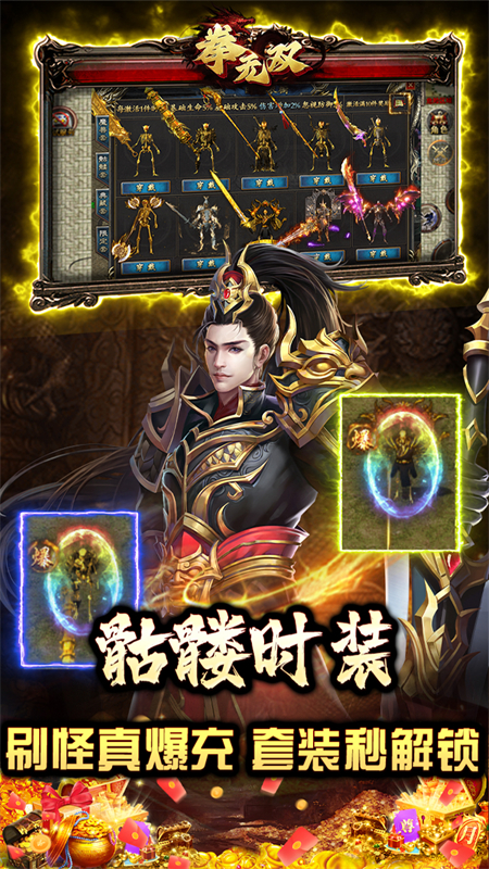 拳无双现在上线即送自动拾取、自动回收、自动分解等便捷功能,还有野蛮冲撞技能和开荒装备让玩家前期的发展和成长更加简单轻松。游戏中还可以自由的与其他玩家PK,还可以加入公会组队攻沙,重温经典传奇玩法。