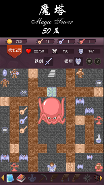 魔塔24层手机版是一款经典的Roguelike地牢探险类游戏,玩家需要在充满挑战的迷宫中不断前进,直到达到第最终层,游戏采用回合制战斗模式,玩家通过合理分配属性点数,如力量、智力、敏捷等,来增强角色能力,从而击败各种怪物,随着层数增加,难度逐渐加大,玩家必须精心规划自己的行动路线,并且妥善管理自身的生命值和魔法值,才能顺利通关。