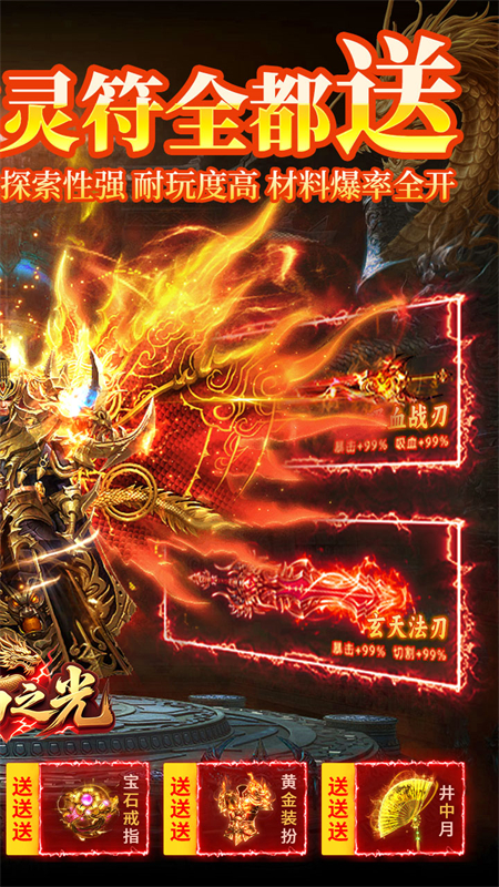 土豪玩家追求一个爽字,在线充值四、五、六档送的耀光印记、光芒法环和幽界主宰令全是百分比斩怪血量,前期刷怪如割草。