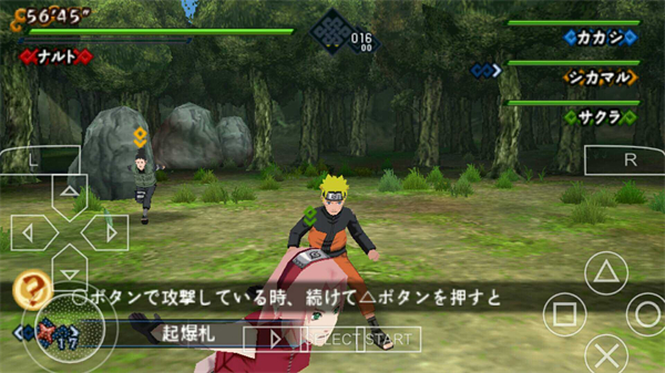 一个人打的不过瘾的时候,可以叫上自己的同伴一起围殴敌人,发动连续攻击就可以对敌人造成重创。发动连续攻击的条件是将敌人打倒气绝状态的时候,靠近敌人,并照着提示按键就可以了。攻击力高、不消耗查克拉不说,而且还很华丽。实在是居家旅行,杀敌灭口,必备招数啊。