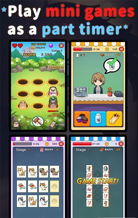 在兼职大楼内玩迷你游戏。升级建筑物以给女孩礼物。