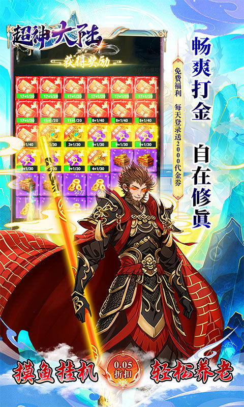 超神大陆0.05折版是一款国风神话题材的角色扮演手游,福利直接给玩家拉满,游戏内所有充值享永久0.05折福利,玩法休闲不内卷,除了有摸鱼挂机系统之外,还自带离线收益系统,玩家没时间玩游戏,只需一天登录一次,也能免费领取丰厚的奖励,让玩家轻松从一介凡人到万仙之尊,书写你的专属传奇!