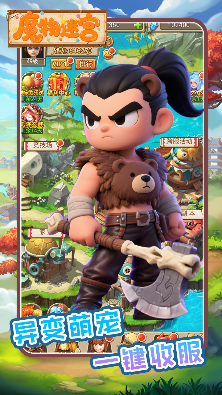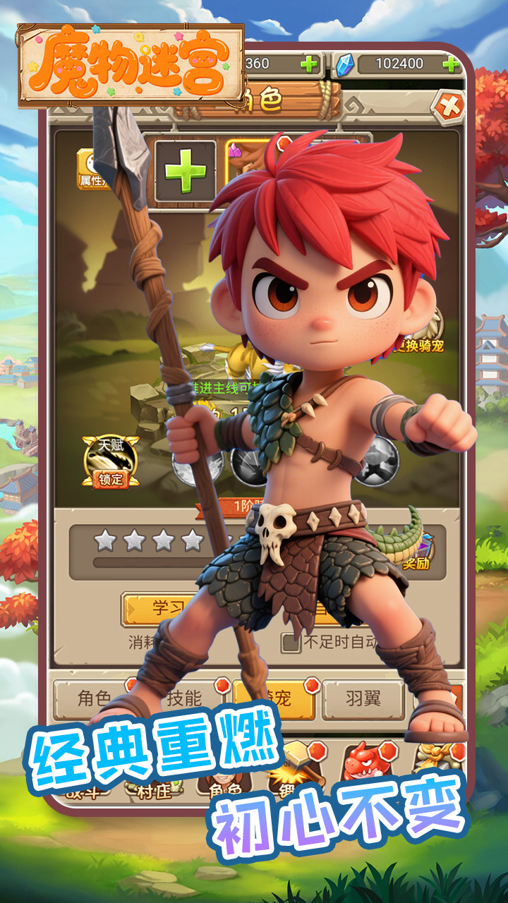 魔物迷宫0.1折版是一款史前题材的RPG冒险手游,玩家将来带时期时代冒险,相比普通版本除了赠送海量钻石、充值卡之外,还提前解锁各种了各种功能,比如原本需要80级+3转才有两个伙伴栏位,现在开局解锁,让玩家直接三名角色上场,战斗更加的轻松!