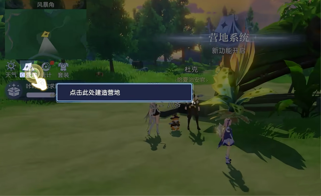 首先我们需要先将自己的角色等级提升至六,并且将主线任务做到营地与制造。在烹饪之前,我们肯定要先打造可以烹饪的设备。我们只需要点击屏幕左上方的营地,这时候就可以为我们建造一片营地了。不过要记得选在空旷并且安全的地方,这样才不会被其他人打扰。