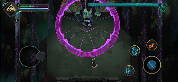 之后会遭遇到更强的敌人,此时游戏提示你按空格闪避,不过,闪避会消耗角色下面的红条,红条耗尽之后,就无法使用,并且闪避这个技能用起来手感不佳,笔者建议采取一边移动一边攻击的策略。