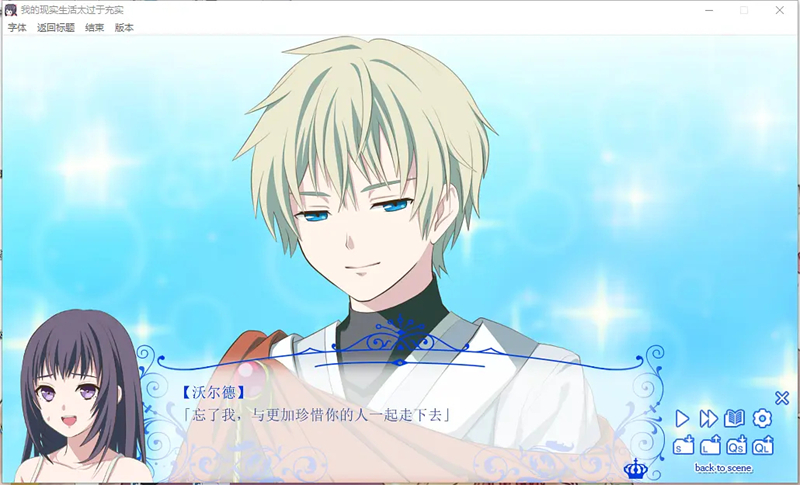 然后剪头发那里是真的爆笑└(^o^)┘,我本来已经做好准备了,最多立绘崩了呗,还在想隼说不符合女主的想象是什么概念,但是那个立绘出来还是笑喷了,感觉制作组这一招欲扬先抑玩的太狠了吧!可惜的是前期的发型更有特点,有点呆萌呆萌的,剪了头发之后少了点辨识度,不过还是帅的,然后还真有点像沃尔德大人,另外说说沃尔德大人与其说是乙女游戏,更像是聊天男友的那种感觉吧,还会对应女主现在的心情做出回应,金发碧眼的设定我也很吃的!