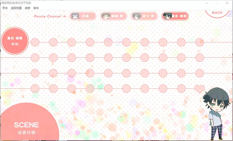 所以看到女主认出转校生是以前自己的好朋友之后,我对女主的态度是有些反感的,虽然我也是人前现充(并没有对象的那种orz)人后宅,但是如果遇到好朋友,是不会为了维持自己的表面形象而疏远甚至不认这个朋友的,但是玩到后面慢慢理解了女主,我是那种虽然宅,但是一直都有不少朋友的人,虽然都不是特别亲密的朋友,但至少还是人际关系比较好的,而女主初中时被整个班级排斥甚至组队都找不到同伴,这种事在我这里是没有也不可能发生的,介于女主的初中生活确实比较不堪回首,而那时步君的存在使得这段时间内女主不再排斥上学,回忆里两个人初次交谈时一起聊到爱好的兴奋和喜悦同时又和现实中两个人课上英文对话三分钟只说了两句hello形成鲜明对比,让人感慨为什么现在会这么虐心。