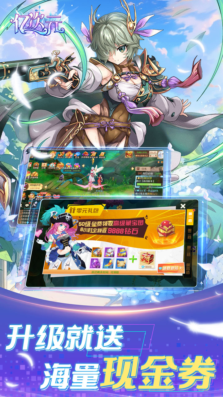 亿次元0.05折每日送万元代金券版中玩家可自由选择六大职业,还有非常经常的主线,让玩家可以亲历热血故事,探索神秘次元世界。游戏融合使灵培养、伙伴召唤、多重羁绊等核心系统,打造极具策略深度的养成玩法。