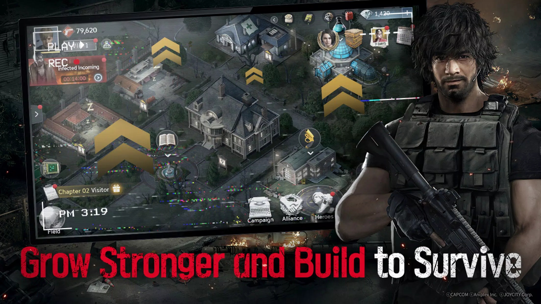 生化险境生存兵种手机版是一款基于《生化危机》IP的衍生作品,游戏故事设定在一个平行世界中,玩家将扮演末日时代的幸存者,组织小队进行冒险、收集资源,并建立避难所以抵御敌人的进攻,游戏忠实于原作的世界观和角色,但带来了全新的剧情体验,里昂、克莱尔、吉尔等系列经典角色将在游戏中作为战斗伙伴出现,玩家可以在“宅邸”据点招募和养成这些角色。