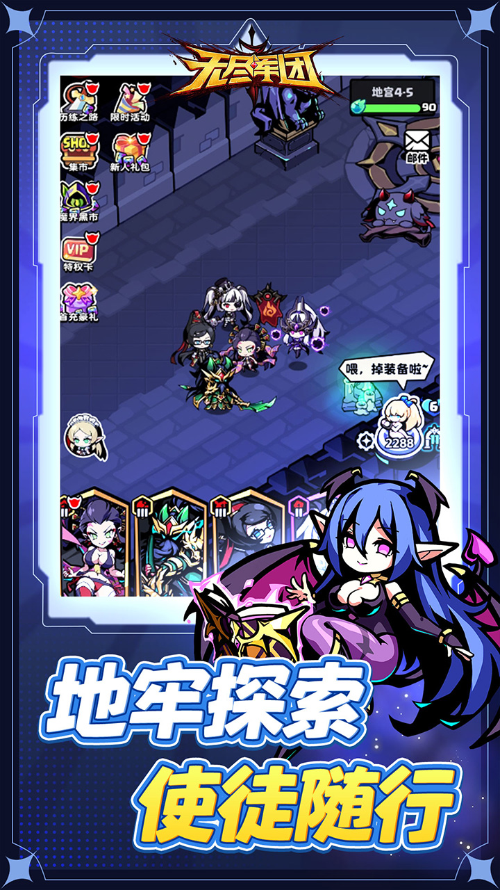 无尽军团手游免费版是一款采用魔幻卡通风格的冒险RPG类手游,我们的玩家可以在这款游戏里化身为一位初登王座的见习魔王。而你需要做的就是通过无尽军团最新版来招募各具特色的使徒,从而组建出属于您的无敌小队,然后征服被勇者逐一攻陷的领地。
