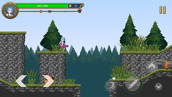 4、游戏中一路上有很多陷阱和怪物,右手进行攻击,跳跃,游戏操作简单,大家准备好了吗?