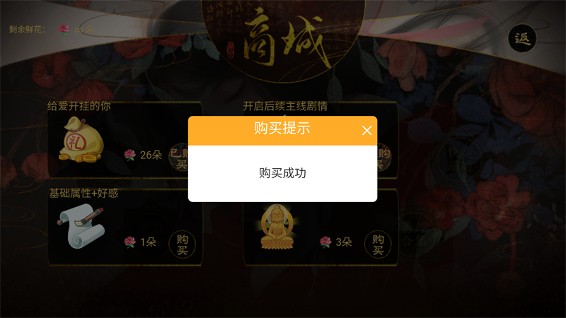 3、然后我们可以打开商城功能,本游戏已经成功解锁无限鲜花功能,你可以随意购买商城里的物品。