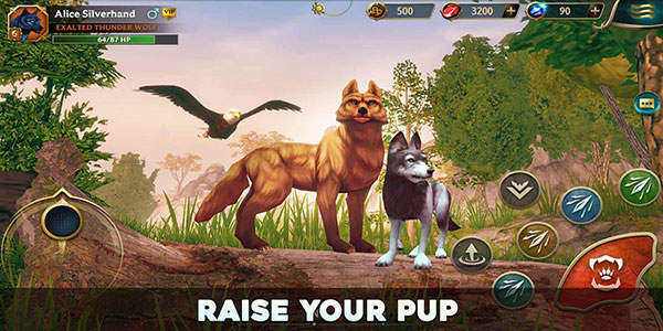 玩家将成为一只狼,你必须不断地狩猎维持自己的生存,并且繁育后代建立族群,并不断使族群变得强大,每只狼都有不同的属性,在你捕猎的同时也要注意不要被比你大型的野兽袭击,快来下载游戏建立一个强大的狩猎族群吧。