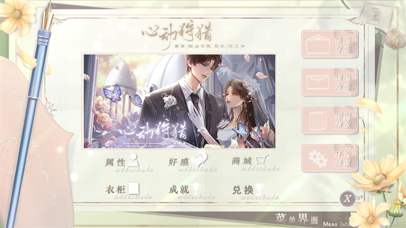 2、接下来我们可以点击右上角的菜单功能,然后选择属性、好感、商城、衣柜、成就等多个功能。