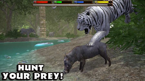 丛林动物模拟器游戏(JungleSim)官方版是一款3D动物模拟游戏,游戏采用先进的3D引擎技术制作,真实还原了原始森林中的生物百态,在游戏中玩家可扮演老虎、豹、熊猫、树懒等多种动物,在高度还原的森林环境中体验生存挑战。你需要捕猎觅食、躲避天敌,同时管理健康、饥饿和能量状态,并通过升级属性来提升生存能力。丰富的动物选择、成长路线以及动态环境变化,既有趣味又能帮助玩家了解不同动物习性。