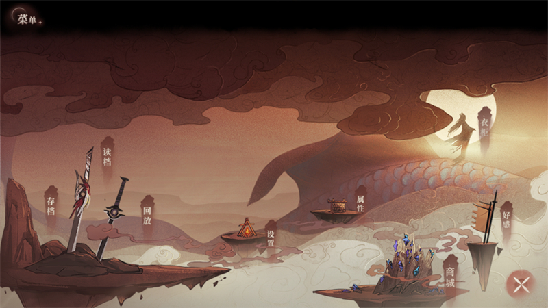 2、接下来我们可以点击右上角的菜单功能,然后选择存档、读档、回放、属性、商城、好感等多个功能。