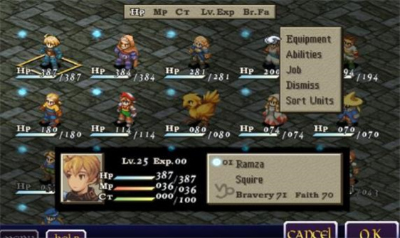 注意要点:终于能自由行动了。各大城市的装备也都有所更新。圣骑アグリアス和机工士ムスタディオ也需要学习下其他职业的技能来完善自己,主角转成盗贼和其他的法师戏的角色转职之后也需要积累JP,所以有必要进行几场自由战斗。期间可以派闲杂人等去完成下任务,3个等级1的见习就可以了,奖励还不错。逛逛几个城市买点新的武器装备,不过千万不要忘记买1-2个ン·カイの腕轮,后面用的到。大部队的等级也到了20,21左右,职业什么的都差不多了,就能出发了。