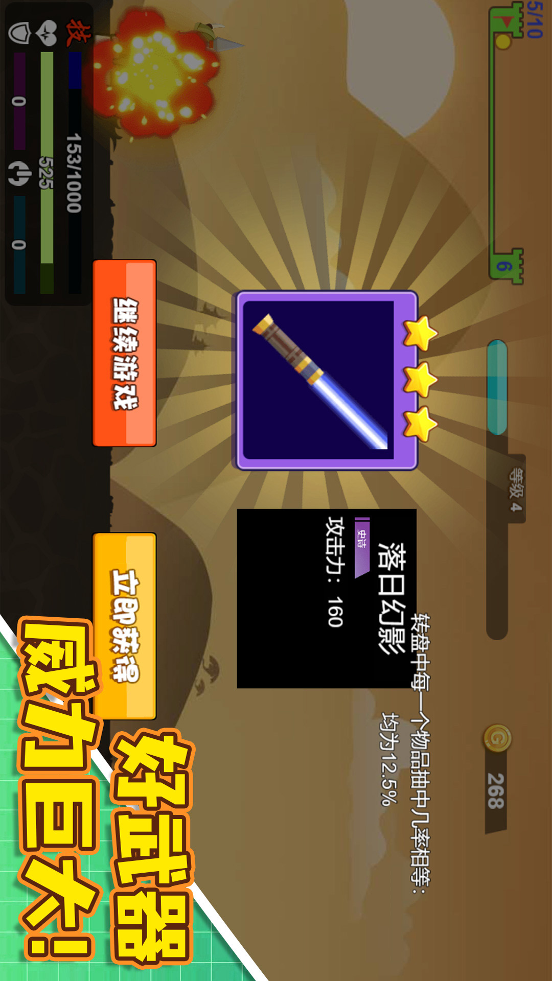 3、成功击败所有敌人数后进入下一关,积累金币用于解锁新武器与升级角色属性。