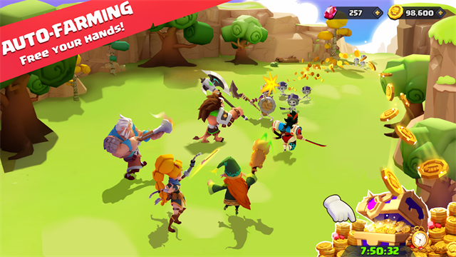 设置你的阵容,英雄将自动击败敌人。离线时将英雄发送到赏金计划以获得奖金。