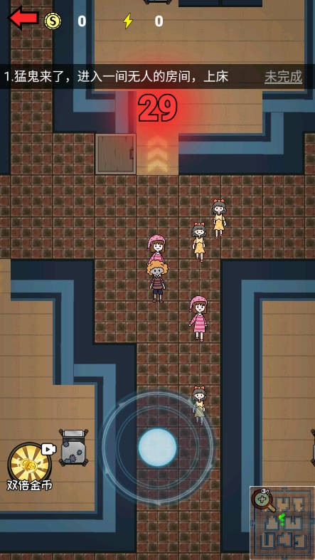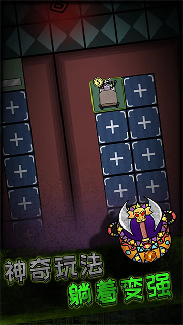 猛鬼宿舍躺平发育是一款闯关,恐怖,塔防类游戏。游戏中玩家控制小人寻找自己心仪的房间让小人躺在床上睡觉赚取金币。玩家需要用金币在房间内建造各种基础道具和升级各种道具,房门,床来增加收益和抵御鬼怪袭击。在游戏后期玩家需要建造发电装置获得升级高级物品必不可少的电力,玩家需要驱赶鬼怪慢慢积攒金币和电力升级玩家放置的炮台击杀鬼怪获得胜利,相反若是鬼怪突破玩家房门进入房间则游戏失败。
