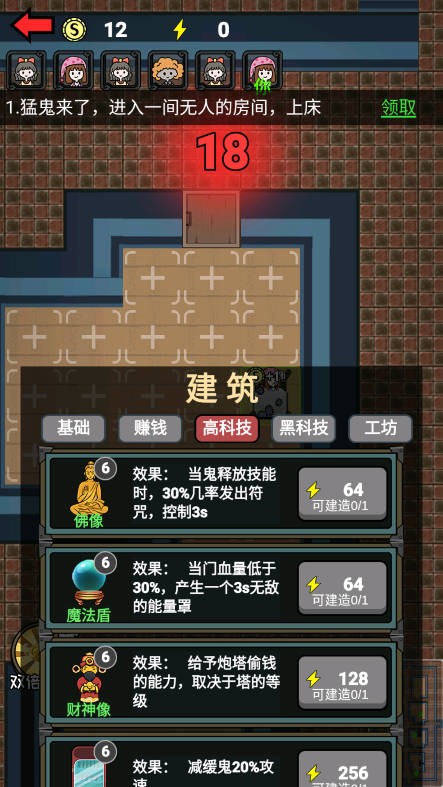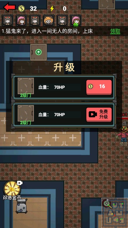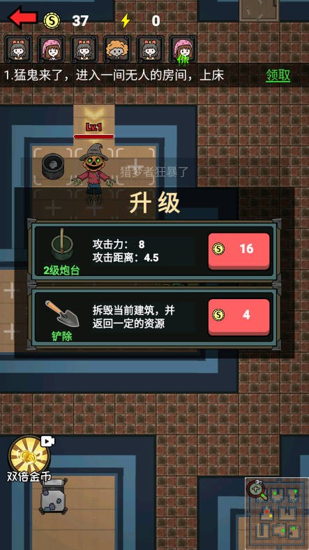 5、获取金币后,优先投资在门的强化与炮台的升级,以确保房间的安全性。