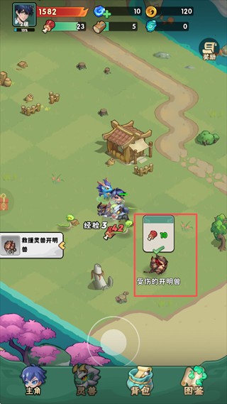 遇到受伤的开明兽时,使用对应的道具进行救援,可将其纳入灵兽队伍。