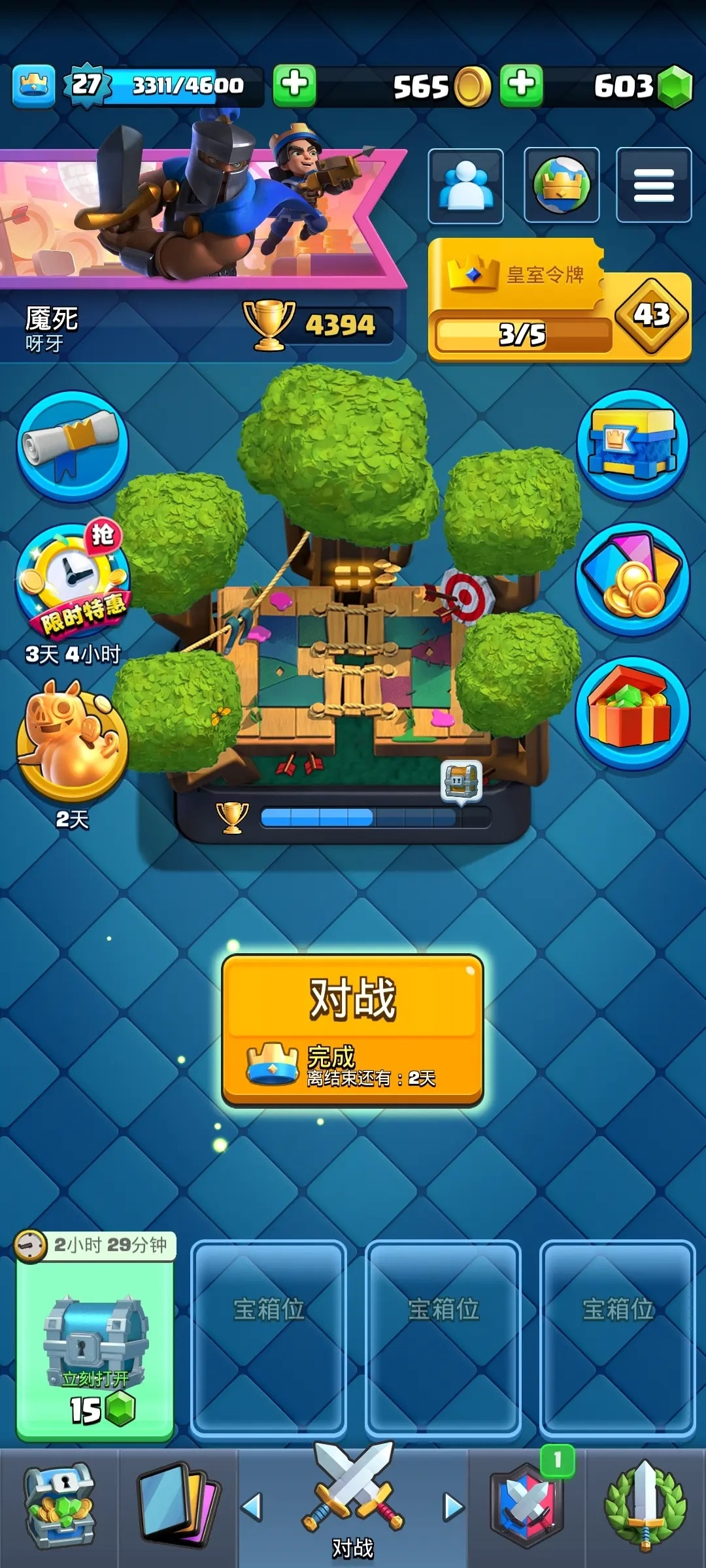 v24.1.1部落冲突皇室战争是一款策略类手机游戏,该游戏是以策略战争为主题的,通过不断地获取卡片以此来增强自身的战斗力,从而与成千上万的游戏玩家们进行战斗,来获得奖杯开启更多不同场地的竞技场,游戏给玩家准备了很多有趣的玩法,玩家在线就可以开启战斗。