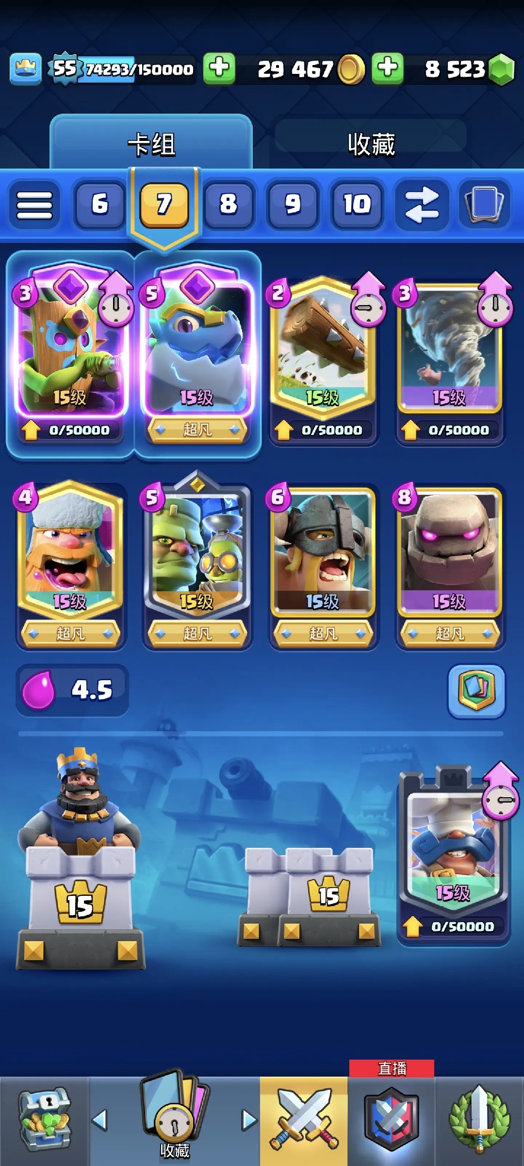 卡组:飞龙+巨人+骑士+火球+万箭齐发+弓箭手+炸弹人+哥布林投矛手。